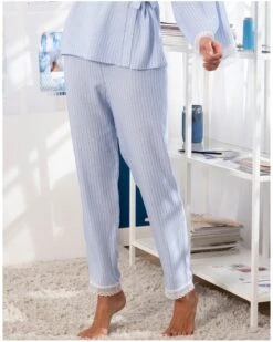 Alliant sophistication et confort, ce pantalon présente une teinte bleu liquette moderne, parfait pour une silhouette élégante et décontractée au quotidien.