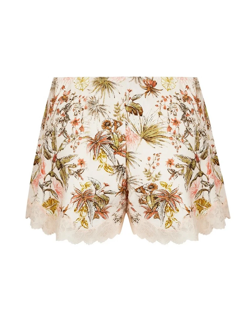Le short Antigel Evasion Tropique en viscose imprimée allie légèreté et élégance, avec un galon de dentelle délicatement incrusté sur les cuisses, devant et dos. Un choix parfait pour une touche de confort raffiné.