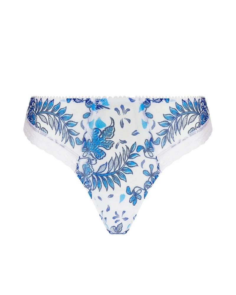 Slip séduction en tulle imprimé, orné d’un délicat galon de dentelle sur les cuisses, devant et dos. Élégance et légèreté pour une allure irrésistible.