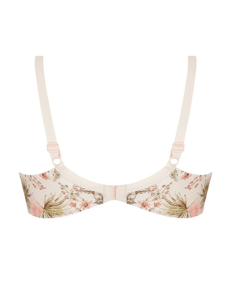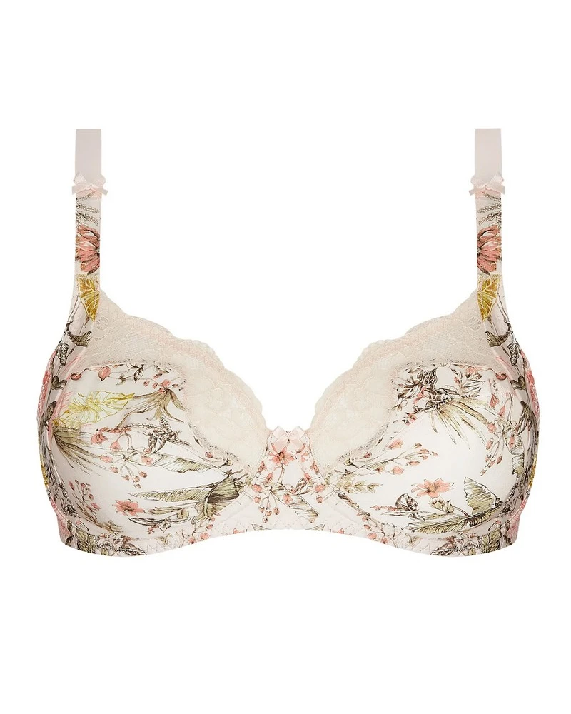 Le soutien-gorge à armature Antigel Evasion Tropique allie confort et élégance, avec ses bonnets en trois parties en maille imprimée et un décolleté en dentelle. Son nœud à l’entregorge et ses bretelles recouvertes de maille ajoutent une touche raffinée à ce modèle bien-être.