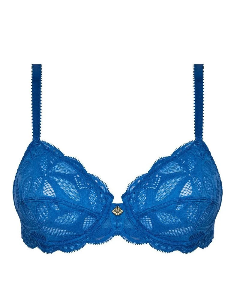 Le soutien-gorge Ă armatures Stricto Sensuelle de la marque Antigel, offre une dentelle jacquard composĂ©e de polyamide recyclĂ©, conjuguĂ©e Ă l’utilisation de fils mats et brillants, crĂ©ant un subtil relief.