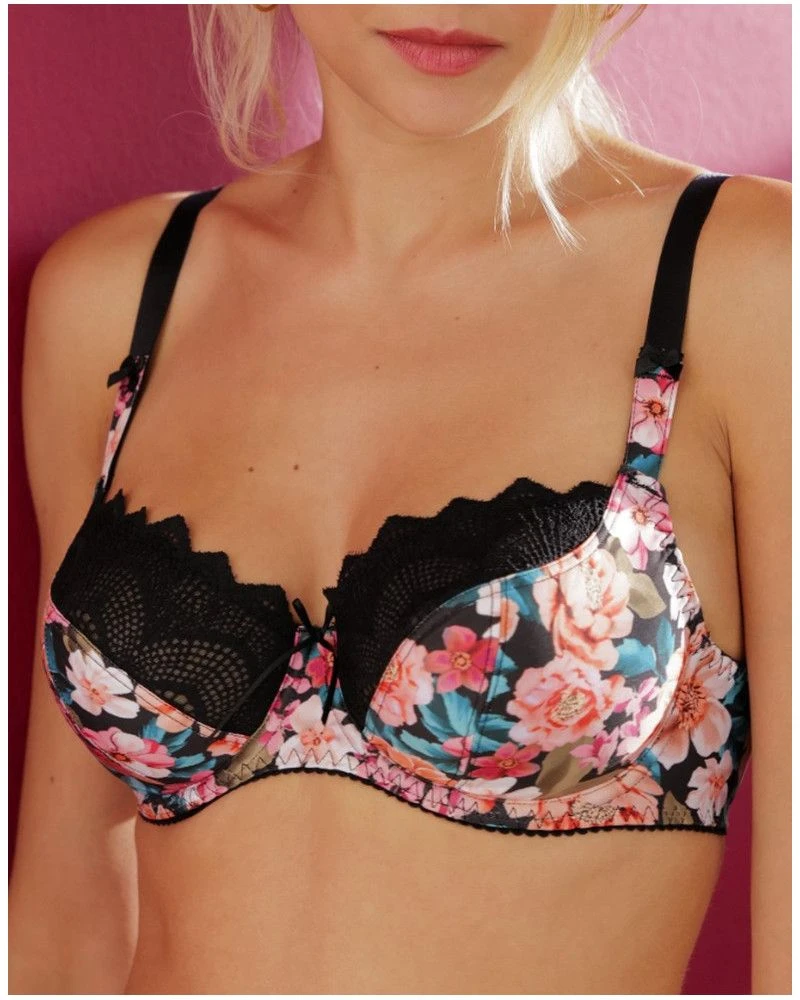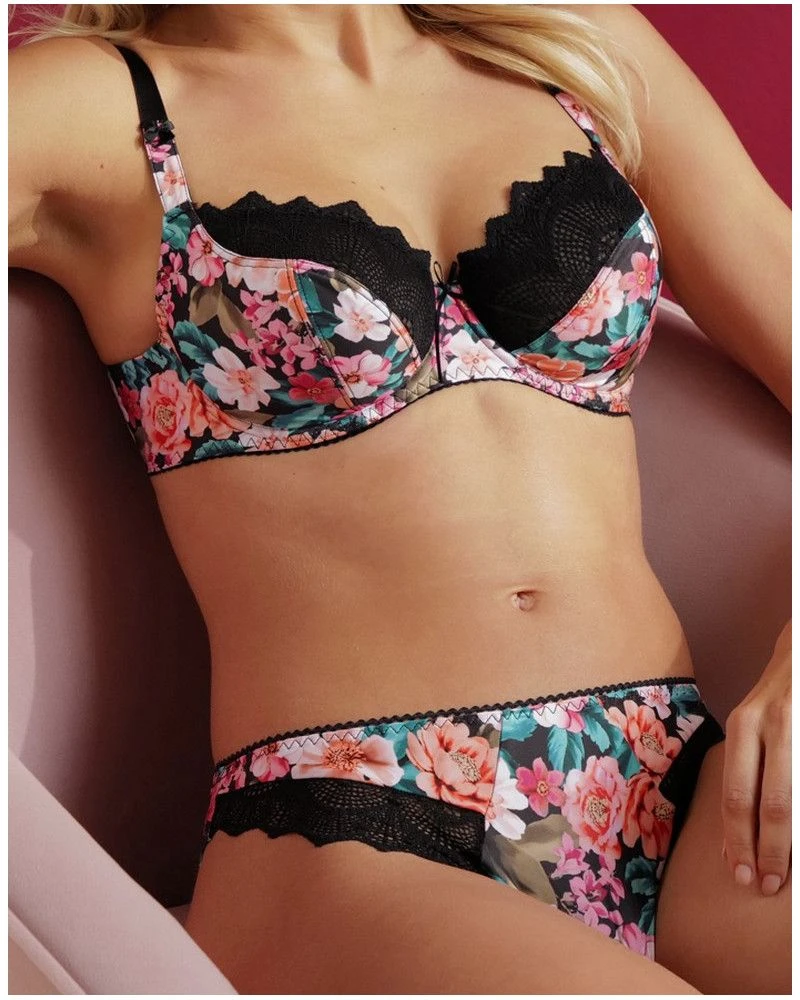 La collection Parfum de Kerala de la marque de lingerie Antigel évoque avec intensité l’émotion visuelle et olfactive d’une promenade nocturne, lorsque certaines fleurs s’épanouissent et diffusent leur parfum envoûtant. Sur un fond noir, une composition unique d’hibiscus, de lauriers roses, de pervenches et de lilas est imprimée sur une maille satinée et en viscose.