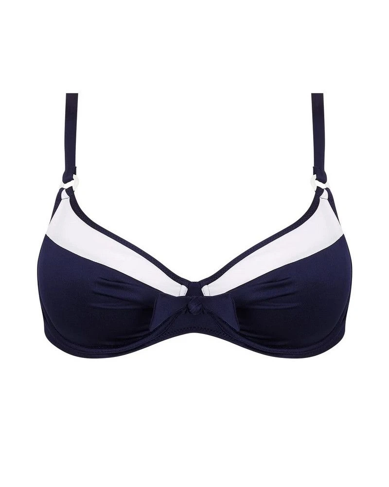 Le soutien-gorge de bain Antigel offre un équilibre parfait entre confort et séduction avec ses bonnets sans couture, demi-lune sur les côtés assurant un maintien interne, et un nouage à l’avant permettant d’ajuster la profondeur du décolleté.