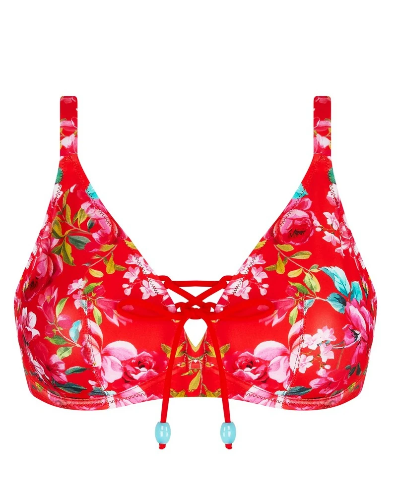 La collection La Chérie Forever d’Antigel célèbre l’éclosion de roses roses illuminées par des touches de blanc et de vert sur fond rouge géranium. Elle sublime la silhouette avec élégance, féminité et éclat, offrant une sensation d’épanouissement et de bien-être. Les parures sont rehaussées par un jeu de laçage rouge uni sur les entre-seins et parfois sur les dos des culottes ou des maillots une pièce. En somme, cette collection vous promet de rayonner tout au long de l’été.
