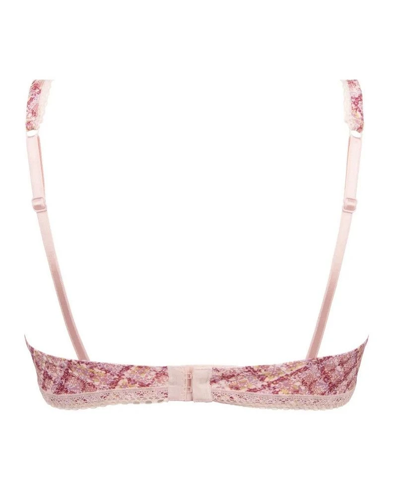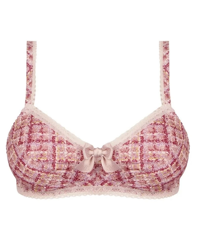 Le soutien-gorge sans armature Antigel de la collection Un amour de Tweed propose des bretelles élastiques avant fixes et enrichies d’un imprimé et d’une dentelle, habillant ainsi le décolleté et la maille ultra douce, imprimée d’un motif exclusif chaine et trame, effet tweed.