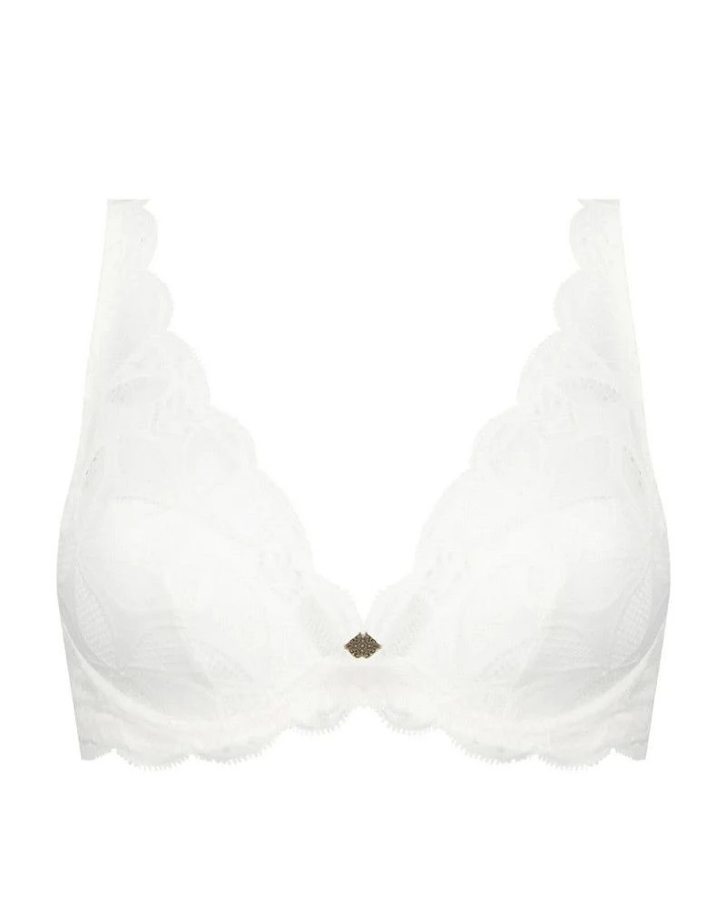 Le soutien-gorge triangle avec armatures Stricto Sensuelle de la marque Antigel est une pièce 1/2 mousse avec armatures qui forme un décolleté. Ce modèle possède des bonnets et basques en dentelle festonnée, les bretelles sont réglables.