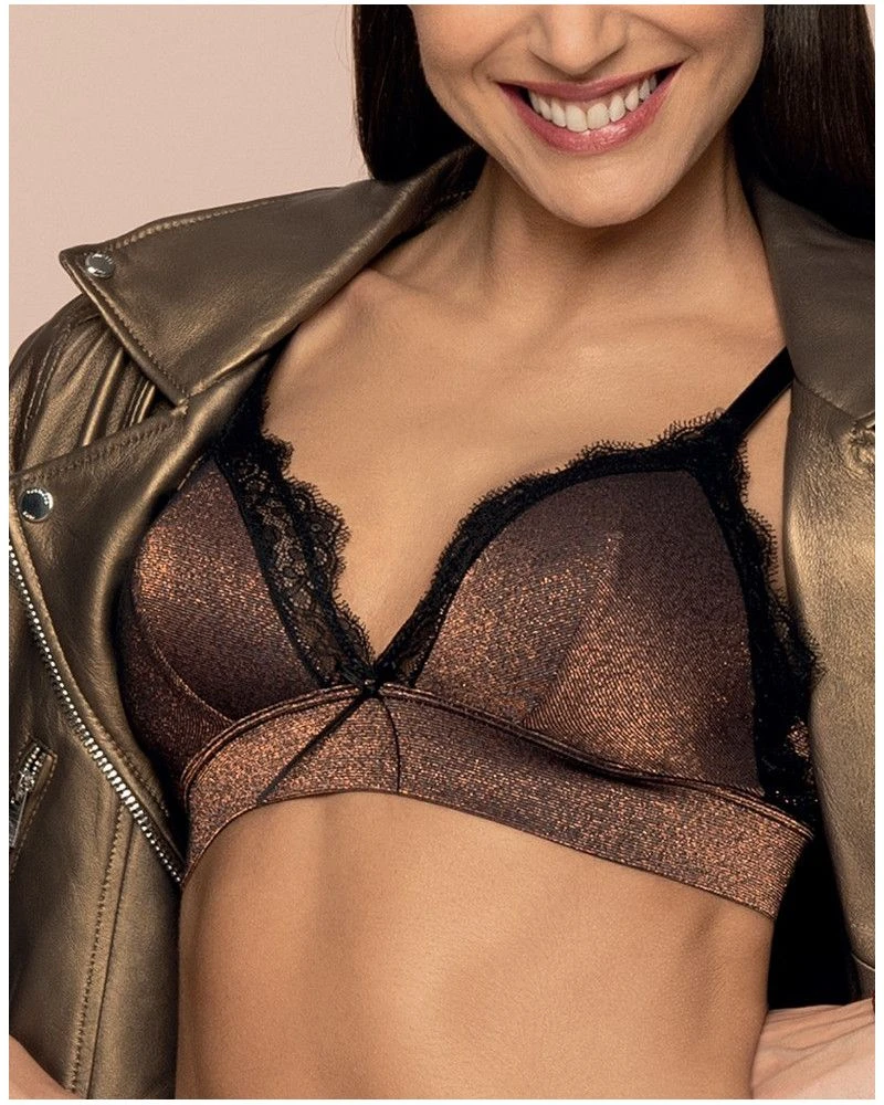 Le soutien-gorge triangle sans armature Antigel de la collection Disco Dentelle est le mélange parfait entre confort et féminité. Son décolleté orné d’une fine dentelle noire lui offre une allure séduisante et sensuelle.