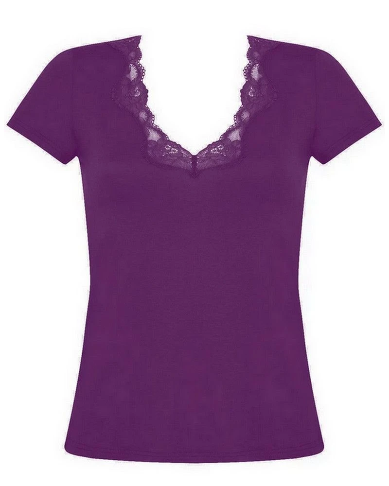 Le tee shirt manches courtes Antigel de la collection Simply Perfect est composé d’un col V en dentelle jacquard et d’une matière souple et légère.