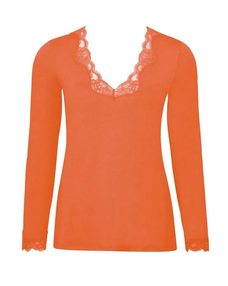 Le tee shirt manches longues col en V Simply Perfect de la marque Antigel allie charme et confort grâce à une maille micromodal et une dentelle Jacquard légère.