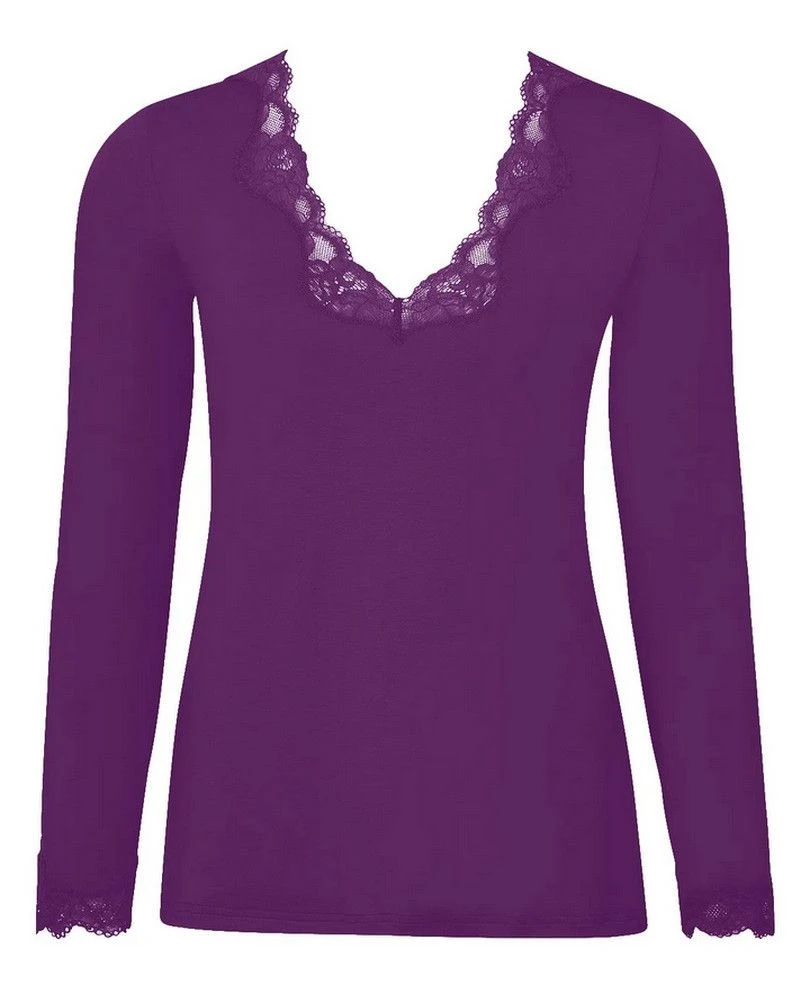 Le tee shirt manches longues col en V Simply Perfect de la marque Antigel allie charme et confort grâce à une maille micromodal et une dentelle Jacquard légère.