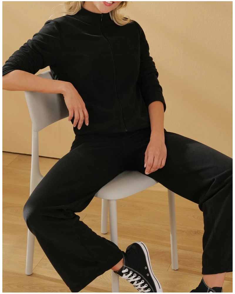 La veste Antigel de la collection Pause Douceur propose un matĂ©riau doux et moelleux Ă l’aspect rĂ©gulier dans un noir classe et chic. Dense mais lĂ©gĂšre, cette veste en maille polaire se porte en extĂ©rieur comme en intĂ©rieur pour un hiver au chaud.Â